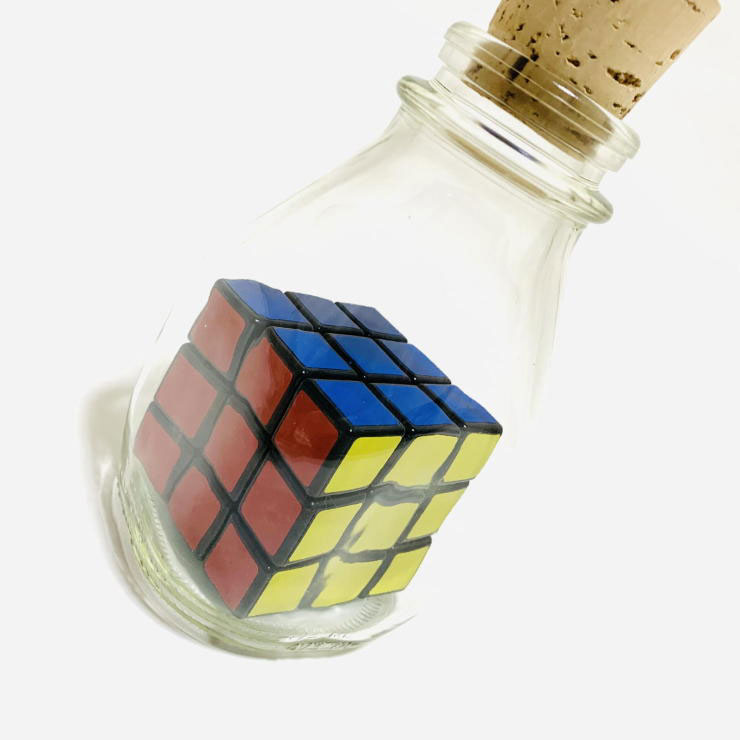 ◎ガラス瓶の中にキューブパズルを回すスペースはありません!